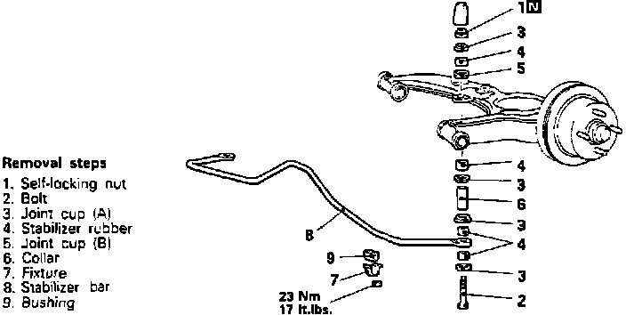 Fig. 27 Removing rear stabilizer bar. Colt Vista & Summit Wagon: