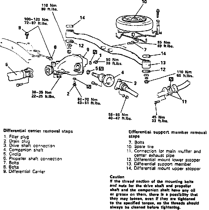 Fig. 4 Differential carrier removal. Colt Vista & Summit Wagon: