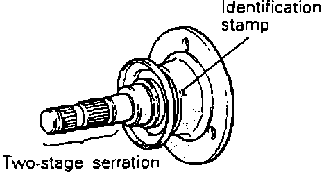 b. Do not damage oil seal of differential carrier with spline section of companion shaft. The righthand shaft on vehicles that have LSD with VCU has a two stage serration. The left and right end can be determined from stampings on companion shaft.