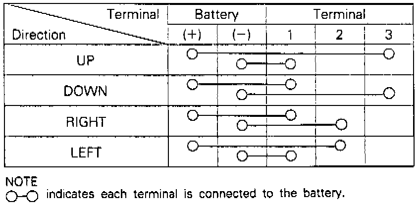 moves as described in the table when each terminal is connected to the battery.