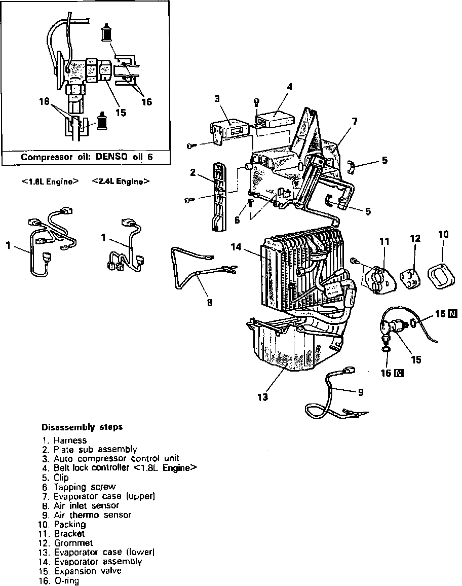 2. Remove and disassemble evaporator housing in numbered sequence shown noting the following: