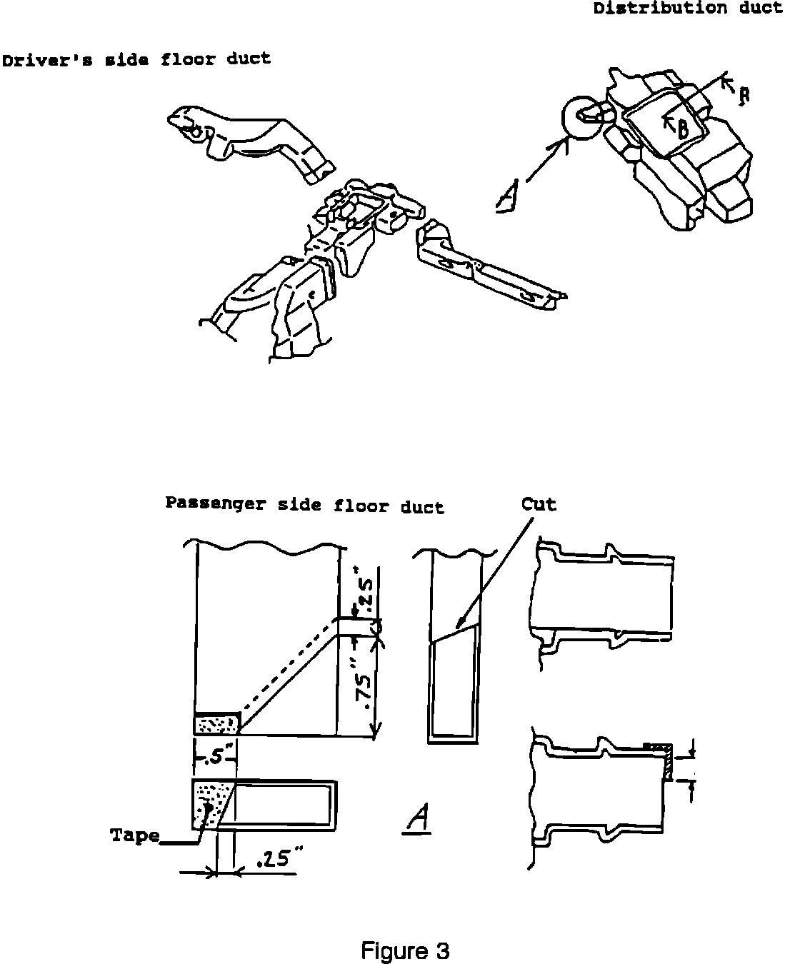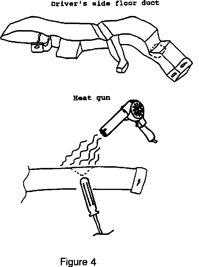 14. Modify the driver's side floor duct by using a heat gun on the hollow portion of the duct and pushing the hollow portion out with a suitable instrument. (See Figure 4)