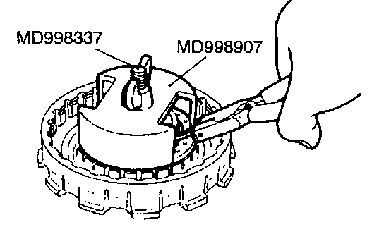 1. Compress the return spring with the special tool.
