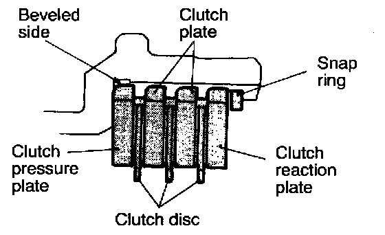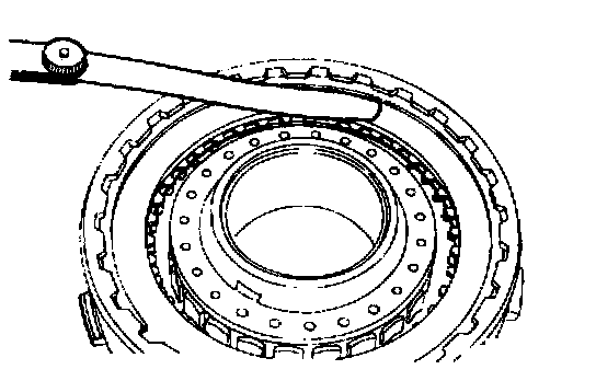 Check clearance between the snap ring and clutch reaction plate. To check the clearance, hold entire circumference of the clutch reaction plate down with 50 Nm (11 lbs.) force. If clearance is out of standard value, select a snap ring to obtain the standard value.