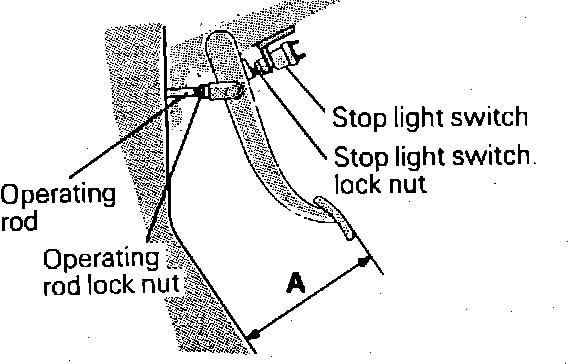 d. On all models, screw in stop light switch until it contacts brake pedal stopper, ensure that brake pedal does not move, then return stop light switch 1/2 to 1 turn and secure by tightening locknut.