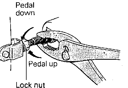 b. Adjust brake pedal height by turning operating rod with pliers until correct brake pedal height is obtained.