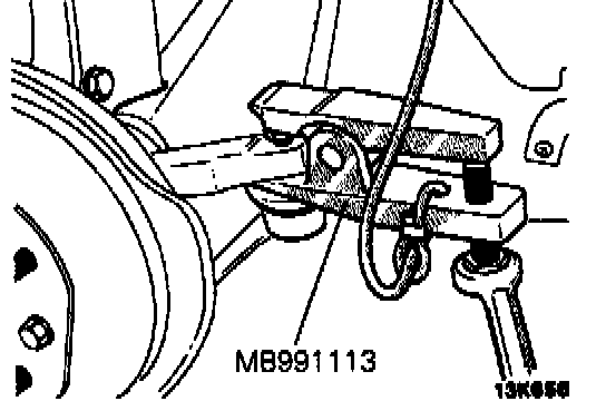 6. Using the special tool, disconnect the tie rod end from the knuckle.