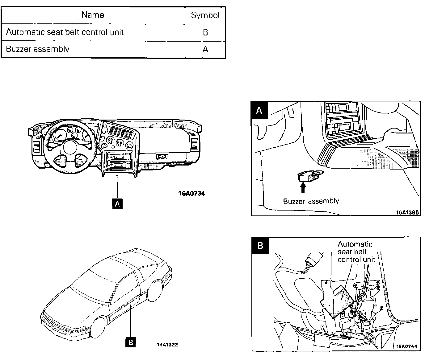 Buzzer And Seat Belt Control Unit Locations: