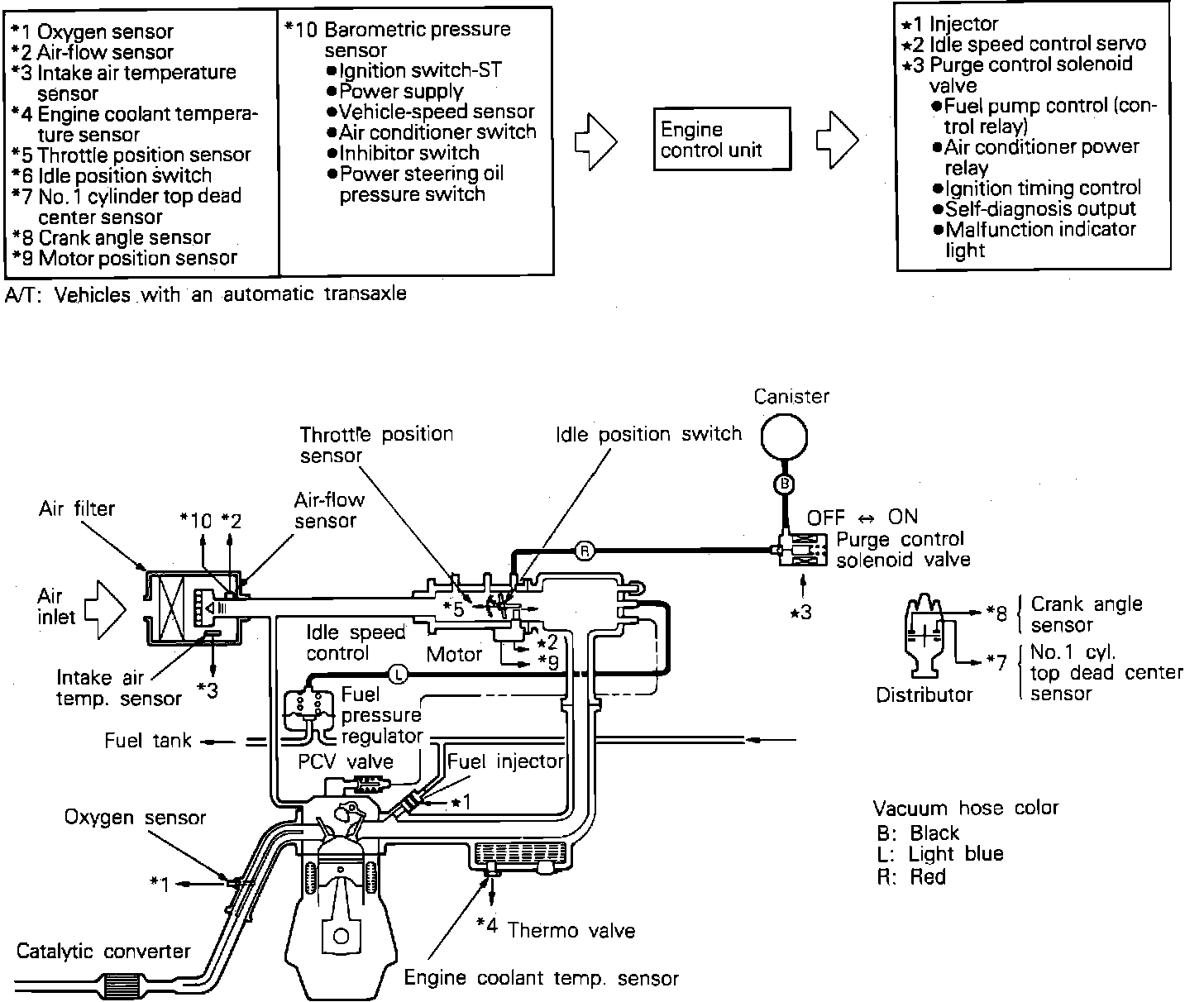 The ECI system is made up of an electronic control module (ECM), various sensors and output devices. This system controls engine operation (i.e. A/F mixture and ignition timing) to reduce pollutants while maintaining optimum driveability conditions and reducing fuel consumption.