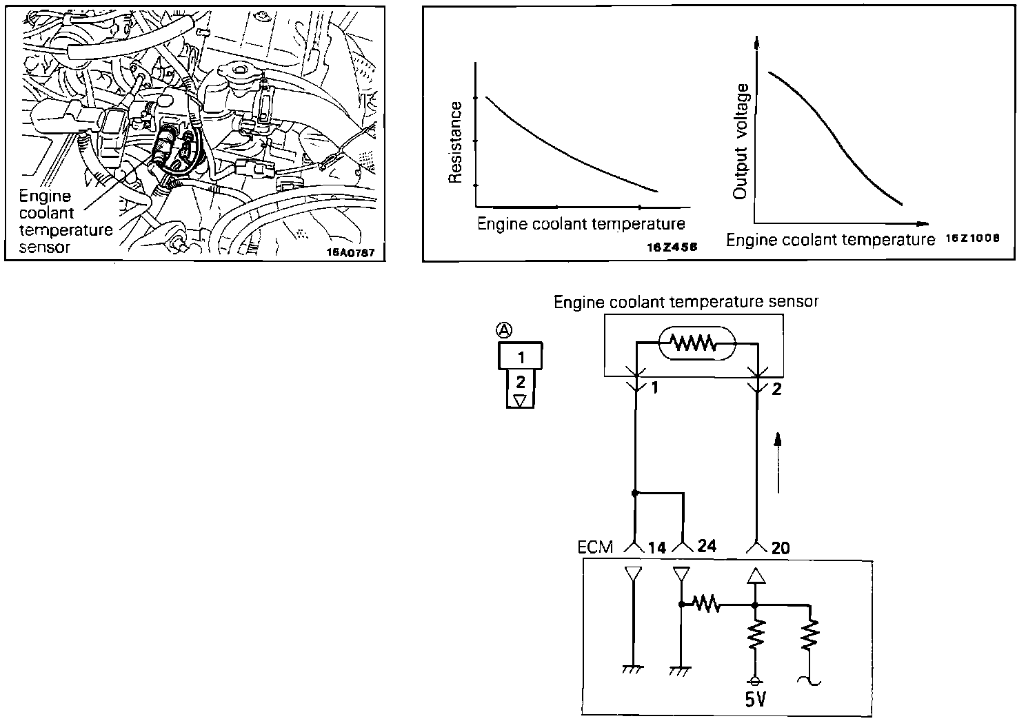 Note: If the temperature of the engine coolant is known, then the sensor may be tested at the connector, without removing it from the thermostat housing.