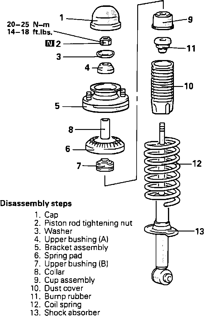 Disassemble strut assembly in numbered sequence shown, noting the following: