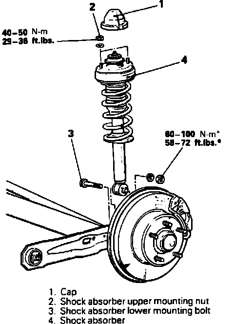 Remove shock absorber assembly in numbered sequence, noting the following: