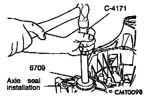 3. Install axle seal on tool # 6709 with C-4171 and insert into axle shaft seal bore.