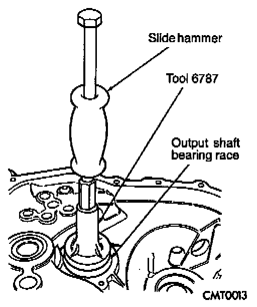 3. Install tool # 6787 and slide hammer C-3752. Tighten tool to output bearing race.