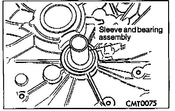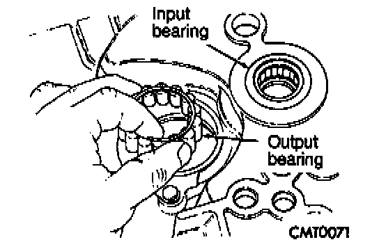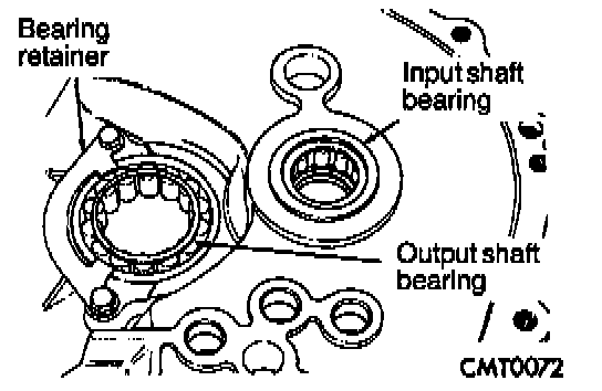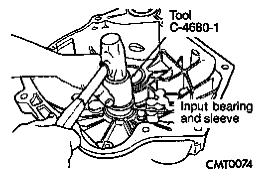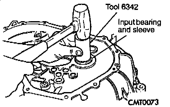 NOTE: The input bearing is a bearing and sleeve one piece unit. The sleeve is the slide point for the clutch release bearing and lever.