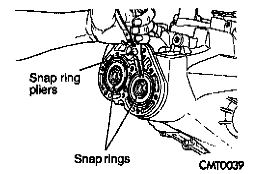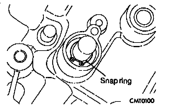 3. Use snap ring plier to remove the snap ring at the crossover shaft bore.