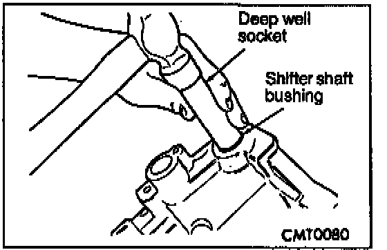 2. Using an appropriate size deep well socket, install bushing in selector shaft bore.