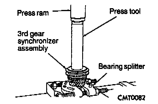 3. Install 3rd gear and 3-4 synchronizer onto input shaft. Install Special Tool # C-3717 over input shaft and press on synchronizer hub and 3rd gear. The synchronizer hub has the letter "U" stamped on the top face of the hub. This designates that the hub must be installed with the "U" facing upward.
