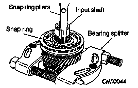 4. Install 314 synchronizer snap ring into slot on input shaft.