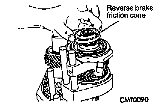 7. Install reverse brake friction cone.