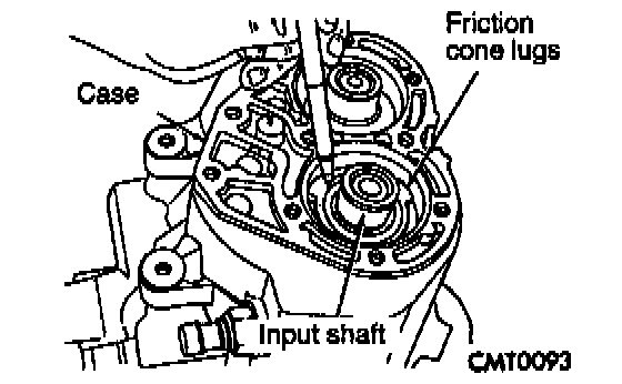 10. Line up reverse brake friction cone lug to the slots in the gear case. Verify reverse brake shim is in position.