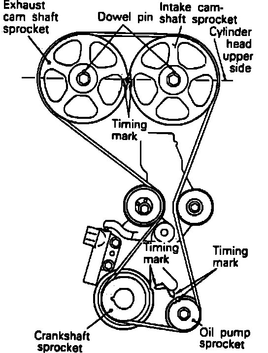l. Remove timing belt. If timing belt is to be reused, mark timing belt indicating direction of rotation.
