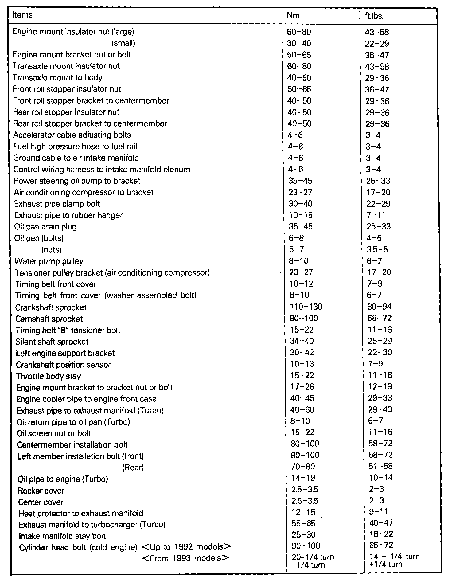 TORQUE SPECIFICATIONS
