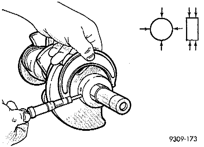 1. Measure the journal outside diameter as shown in the illustration. Refer to Crankshaft Specifications.