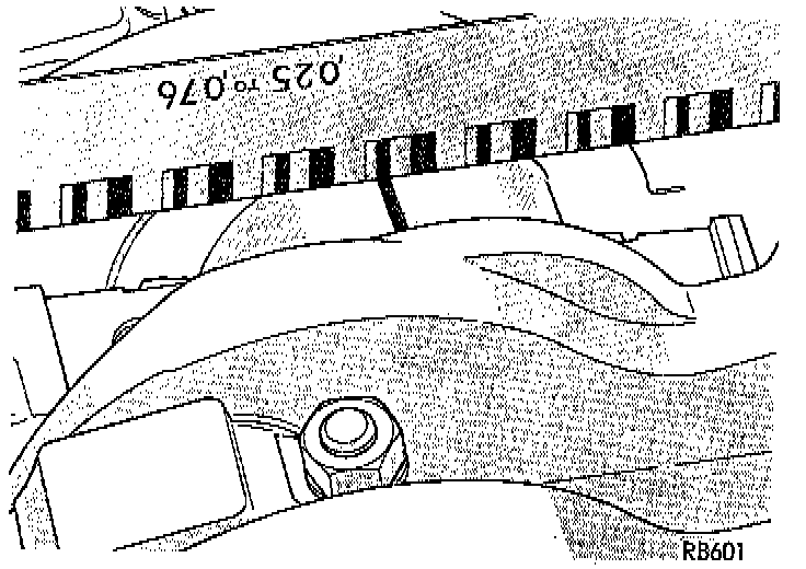 6. Carefully remove the bearing cap and measure the width of the plastigage at the widest part using the scale on the plastigage package. Refer to Crankshaft Specifications for proper clearances. If the clearance exceeds the specified limits. Replace the main bearing(s) and if necessary have the crankshaft machined to next undersize. Also see Measuring Main and Connecting Rod Bearing Clearance in Standard Service Procedures.