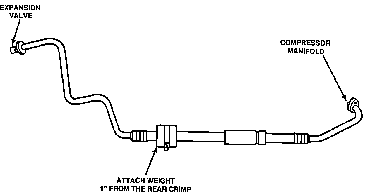 This bulletin involves adding a damper weight to the A/C suction hose.