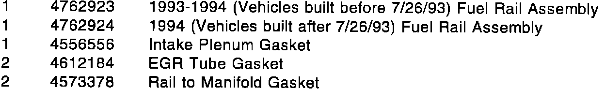THIS BULLETIN SUPERSEDES TECHNICAL SERVICE BULLETIN 18-15-93 DATED NOV. 30, 1993 WHICH SHOULD BE REMOVED FROM YOUR FILES. A NOTE HAS BEEN ADDED IN THE REPAIR PROCEDURE REFERENCING TECHNICAL SERVICE BULLETIN 14-16-93, DATED OCT. 22, 1993, "FUEL PRESSURE REGULATOR INSTALLATION". ALL REVISIONS ARE HIGHLIGHTED WITH ** ASTERISKS**.