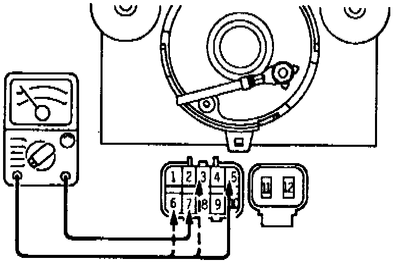 Disconnect solenoid valve electrical connector and measure resistance between terminals shown. If resistance is not