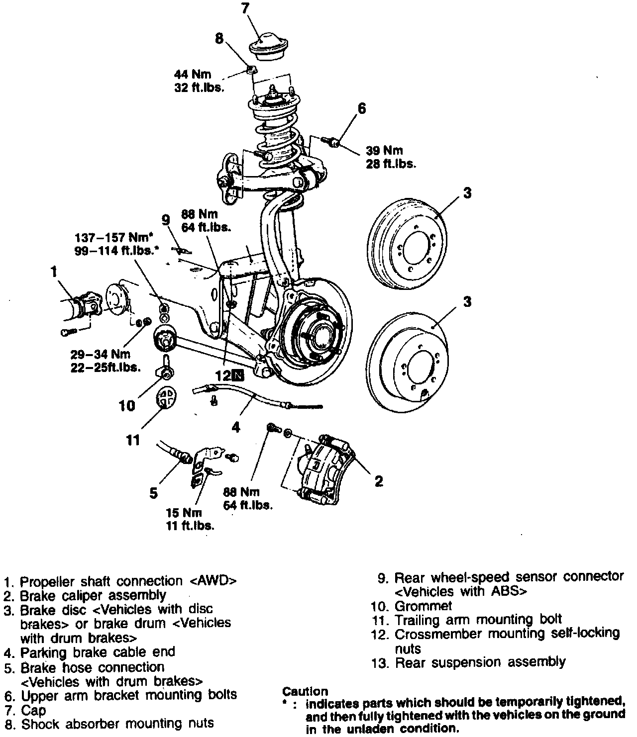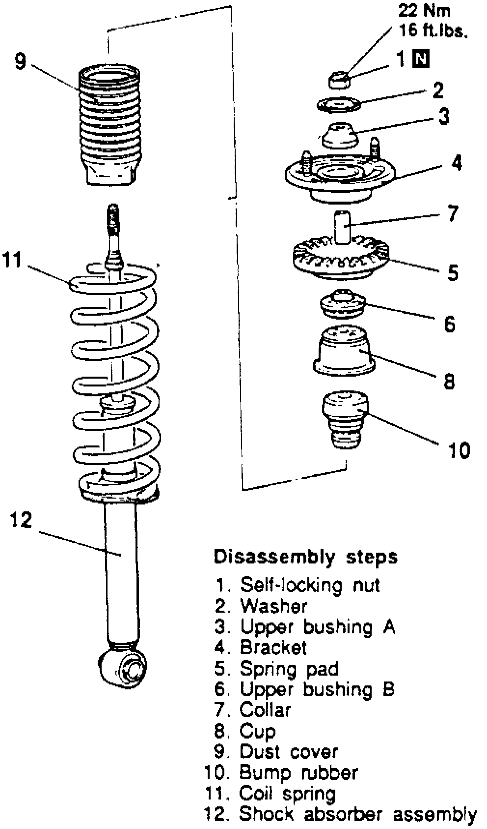 Remove shock absorber assembly in numbered sequence, noting the following: