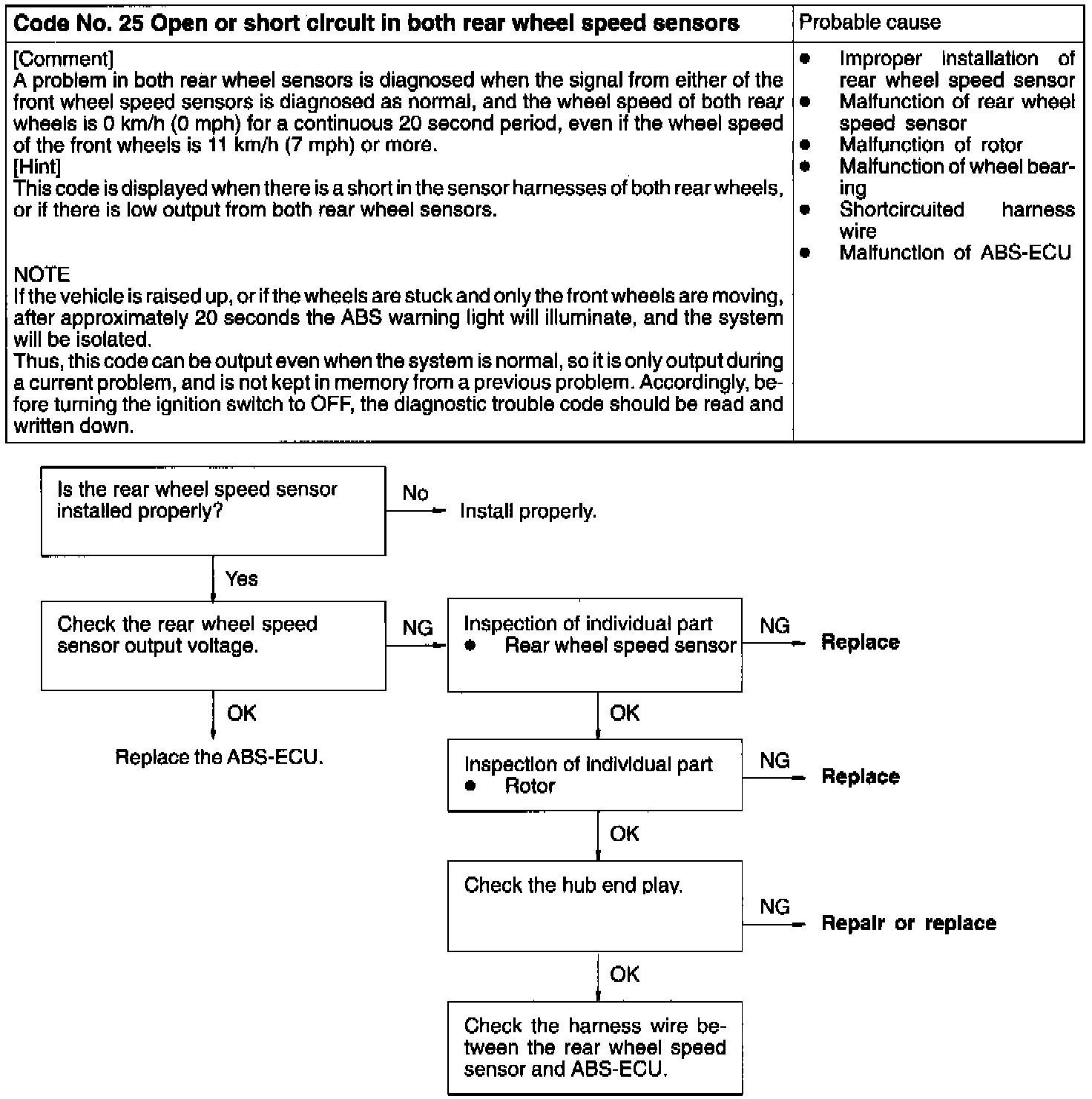 Fig 56 Code 25: Open Or Short Circuit In Both Rear Wheel Speed Sensors: