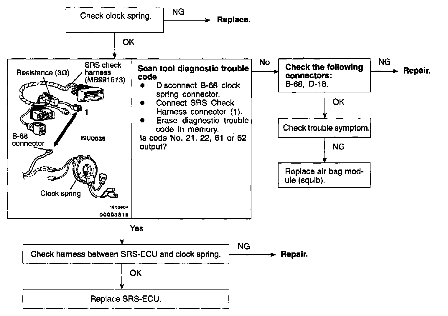 These codes are output when the resistance value between the air bag module (squib) terminals in the SRS-ECU is out of the normal range.