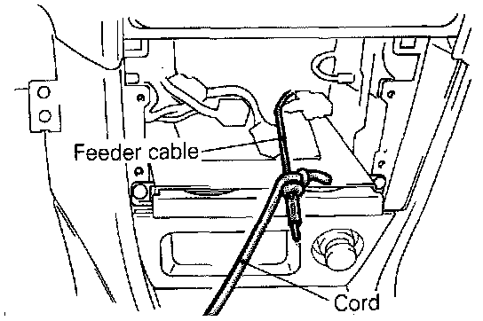 To make wiring easier when installing, tie a cord to the feeder cable terminal, and then pull out the feeder cable to the antenna side.