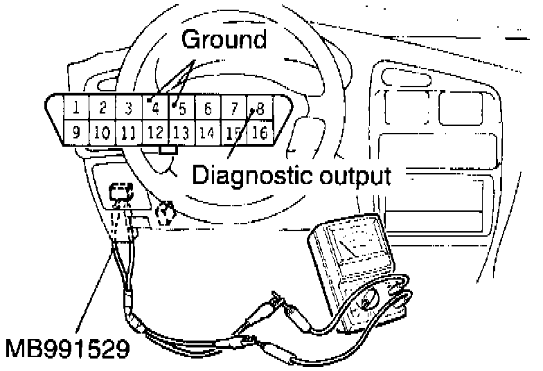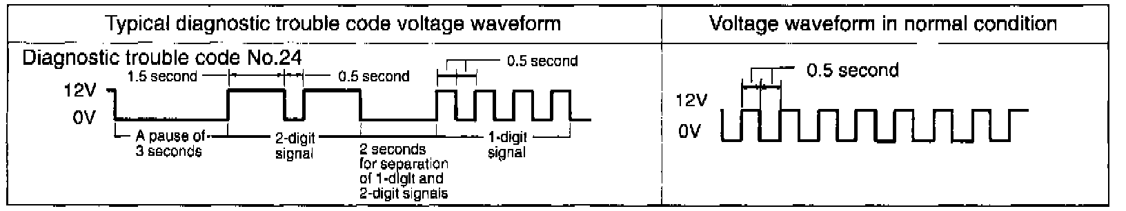 Connect voltmeter to diagnostic connector as shown. The voltmeter pointer will begin to indicate any stored trouble codes. After determining the diagnostic trouble code, refer to Diagnostic Charts for code diagnosis and repair.
