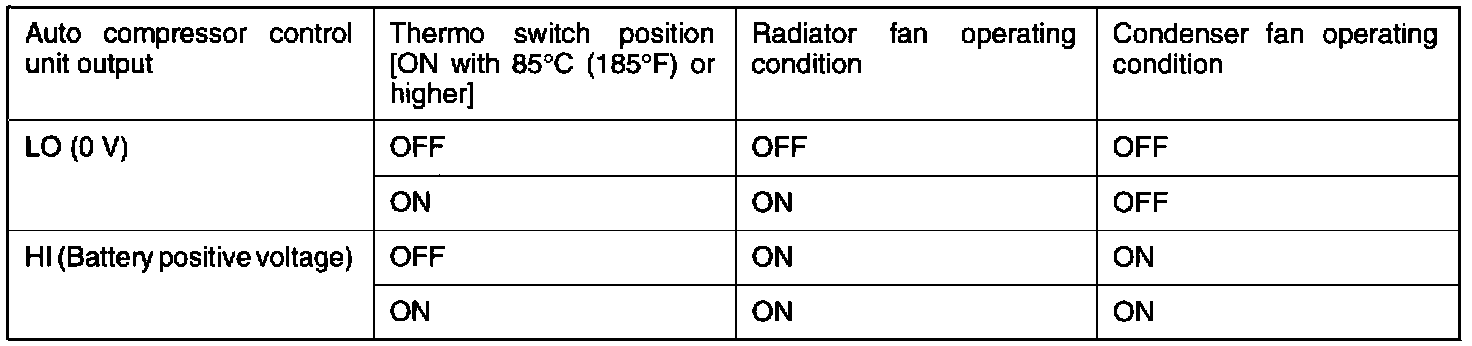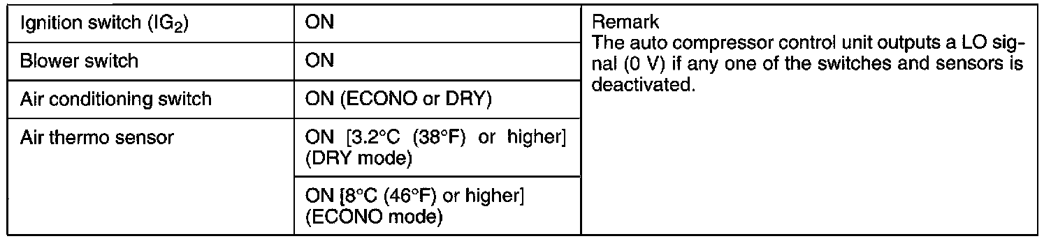2. When auto compressor control unit outputs HI signal (Battery positive voltage)