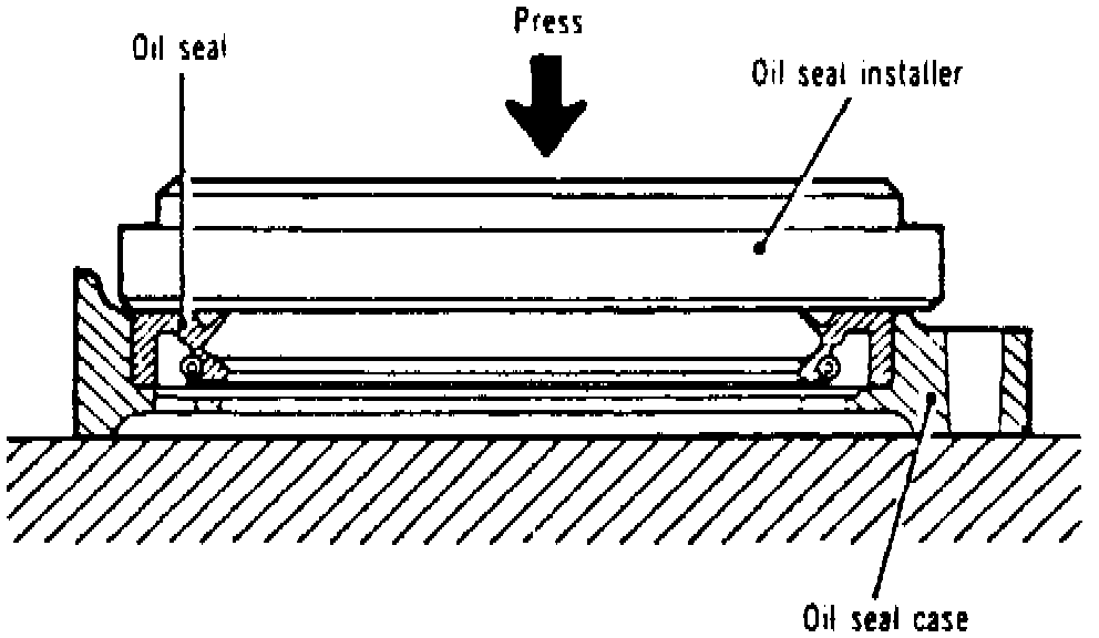 3. Drive in oil seal from inside of case using suitable tool, Fig. 14. Ensure oil seal plate fits properly in inner contact surface of seal case.
