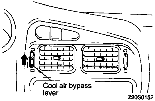 2. Turn the cool air bypass lever of the air outlet center panel assembly fully upward (in the direction of the arrow).