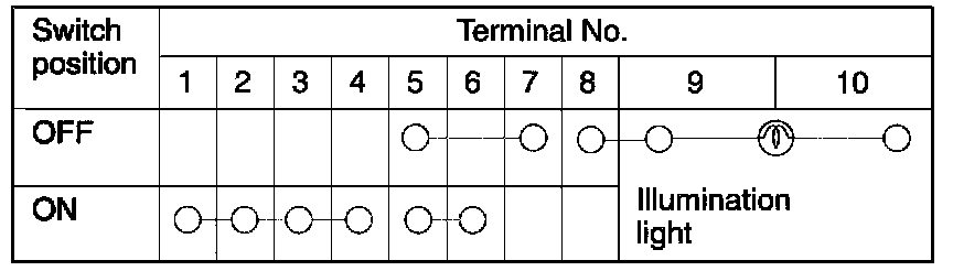 Hazard Light Switch Continuity Check Table: