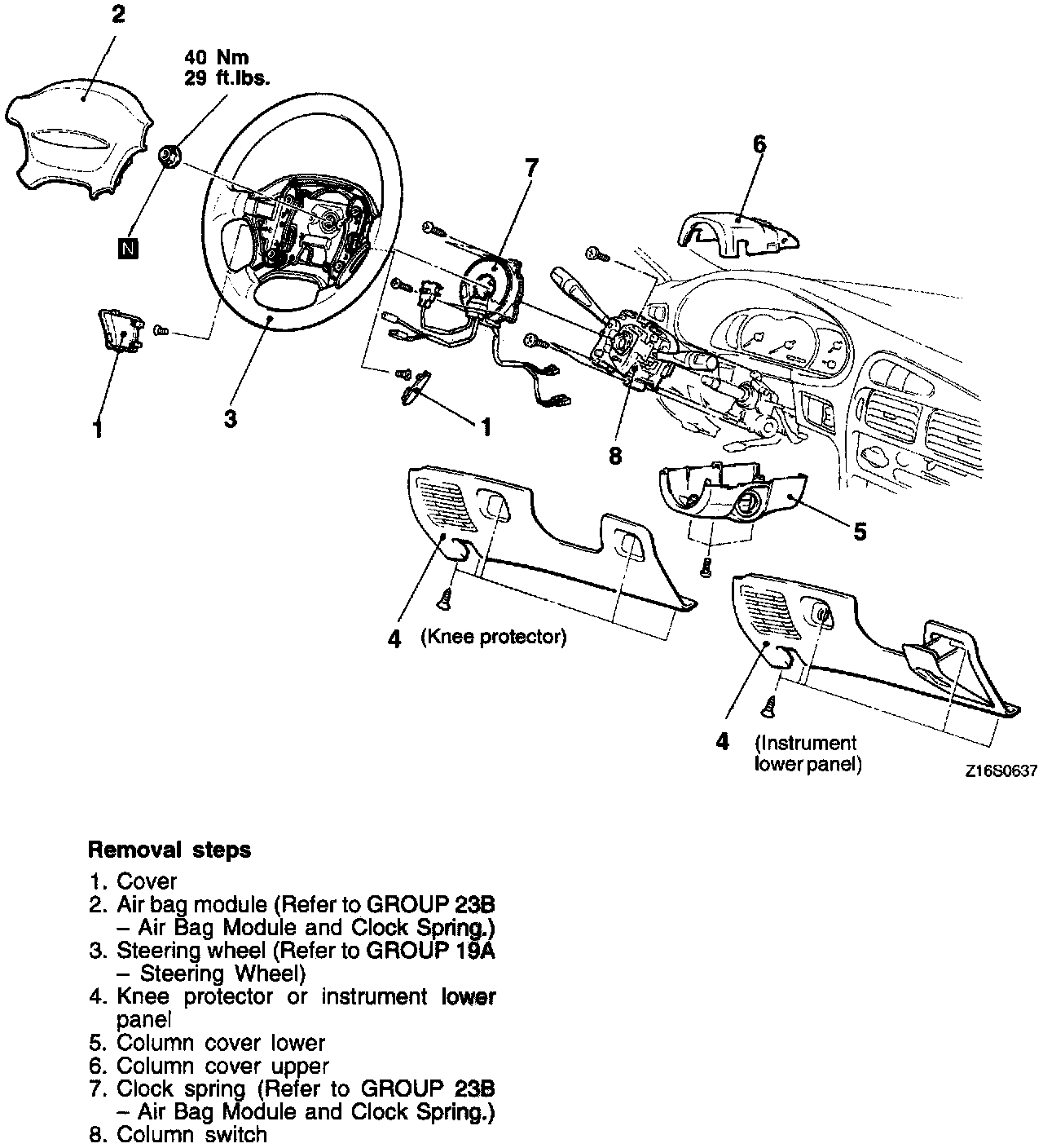 CAUTION: Before removal of air bag module, refer to service precautions and air bag module and clock springs.