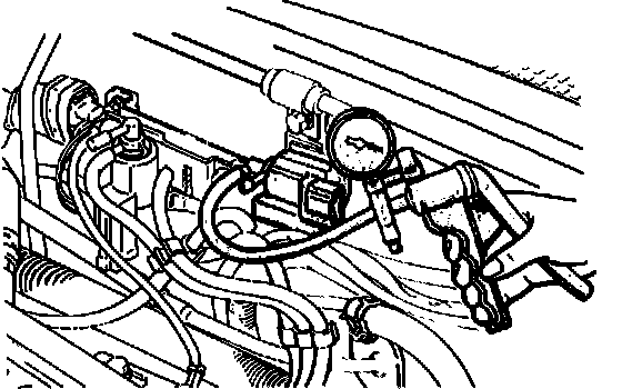 3. Connect a hand vacuum pump to the port that the red-striped hose was disconnected and apply vacuum.