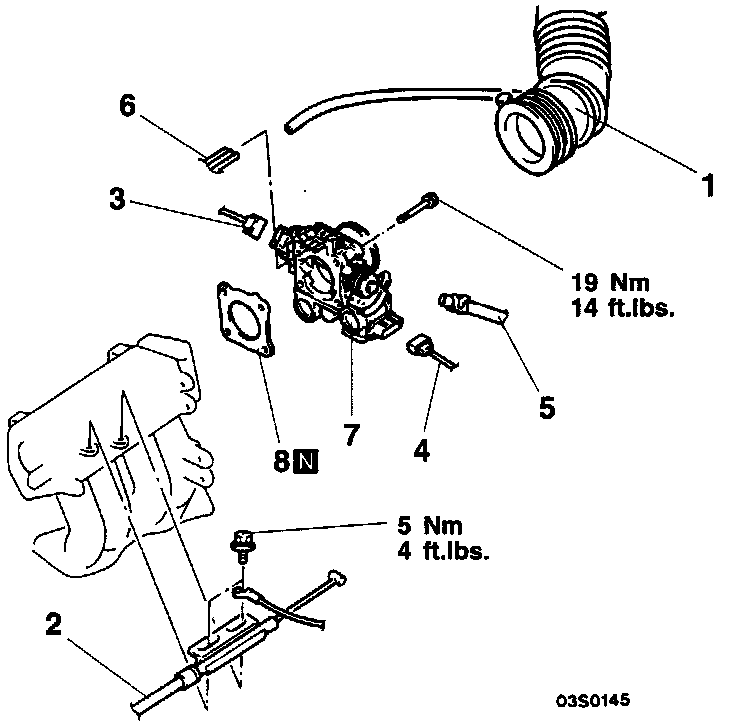 The throttle body houses the throttle valve and the idle air bypass passages. It also serves as a mounting platform for the motor position sensor, idle speed control servo (stepper motor type) and the throttle position sensor.