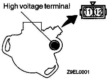 1. Measurement of the primary coil resistance Measure the resistance of the positive terminal 11 and negative terminal 12 of the ignition coil.