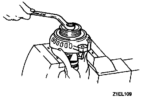 4. After removing the nut, remove the pulley and front bracket from the rotor.