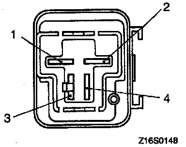 2. Use an ohmmeter check that there is continuity when the (+) terminal of the tester is connected to terminal 4 of the generator relay and the (-) terminal is connected to terminal 2.