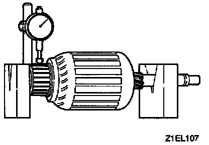 1. Place the armature on a pair of V-blocks, and check the deflection by using a dial gauge.
