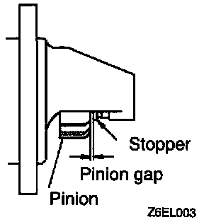 5. If pinion gap is out of specification, adjust by adding or removing gaskets between magnetic switch and front bracket.