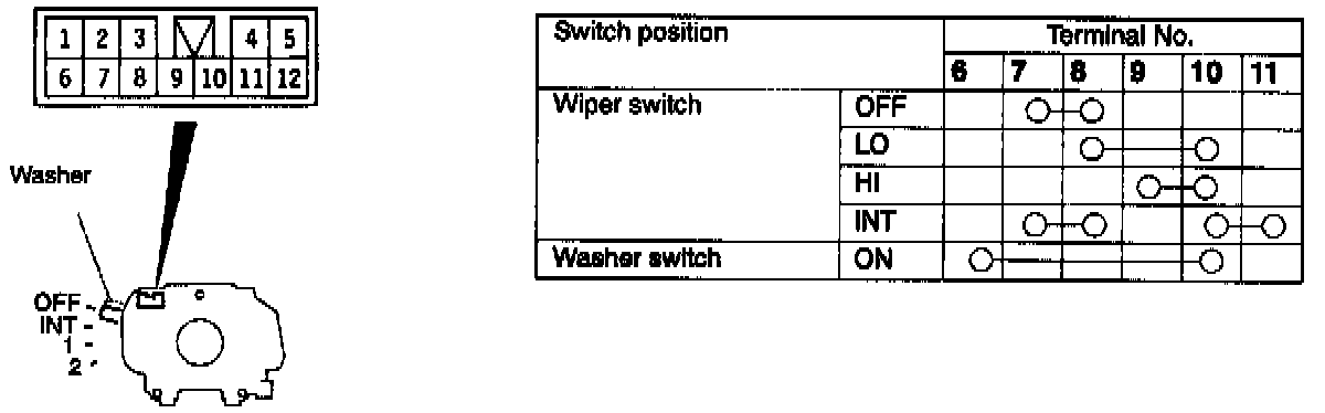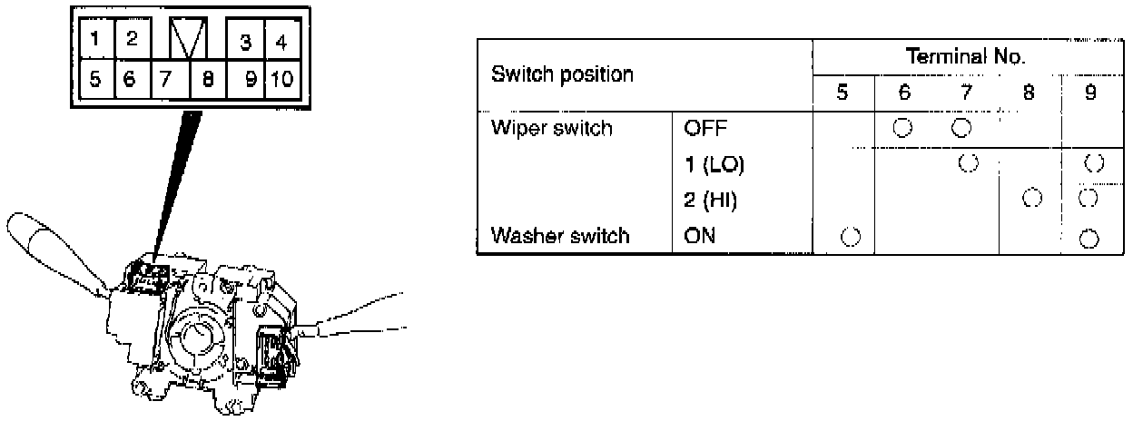 Disconnect column switch connector, then check continuity between terminal for each switch as shown.